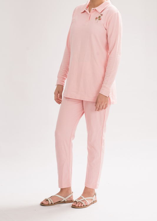 Women’s Long Sleeve Polo Shirt - Rose Shadow